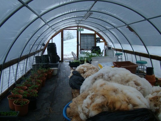 Originally, I planned to work in our in-ground garden bed today but it was snowing when we woke up this morning. I refuse to dig in the ground while it’s snowing…. I spent a few hours in the greenhouse potting up tomatoes instead. We need more pots!