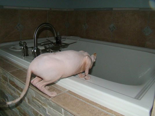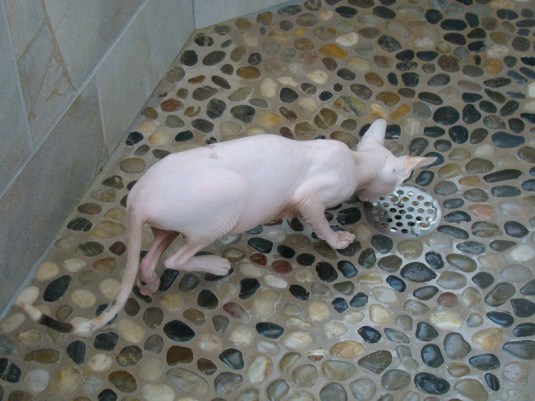 Bindi is drawn towards anything with water in it. She waits for the shower to turn off so she can lick the drain. At least she waits!