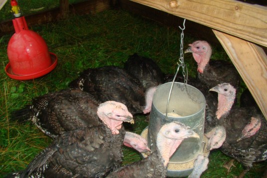 Thanksgiving is four months away and our turkeys are already huge.   Dang it, we started too early.  We”ll either have humongous birds in November or will have birds available early.  These things have been a bit of trouble for us this year and eat a LOT.  I think we’ll probably just grow our own holiday birds from here on out.  We’ll find something else to experiment with next year.
