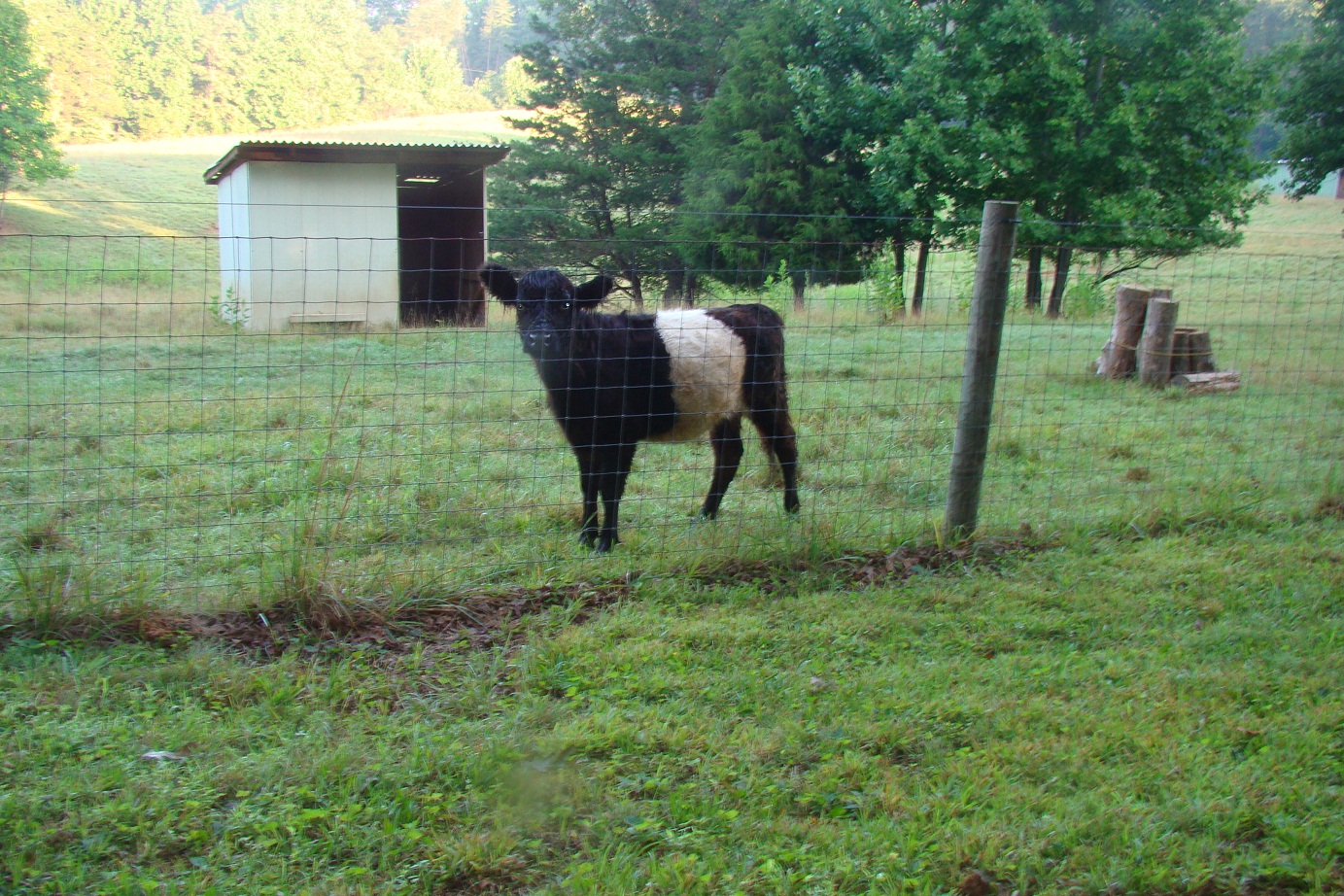 Jessica’s been hanging out by herself in the trees on the far side of our pasture. With the heat we’ve been having, she appears to be a very smart cow! We’ve been meeting her over there every day and working on getting her to eat sweet feed from a bucket. That’s been very successful. She now comes running in the morning when she hears us because that means breakfast.