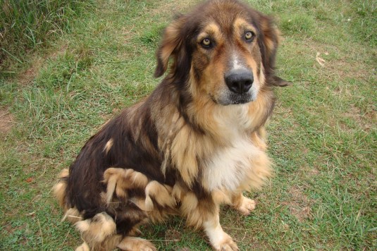 Karakachans shed.. a lot. FiFi will sit for a treat and lets us pet her but she runs away when we try to put flea and tick medicine on her and absolutely wont’ be brushed. Oh well. She won’t win any beauty contests for that coat (but just might for that face).