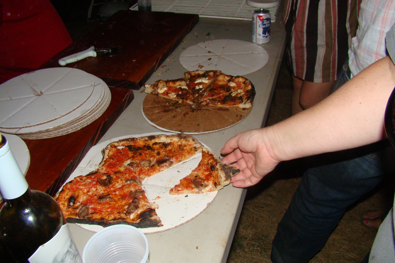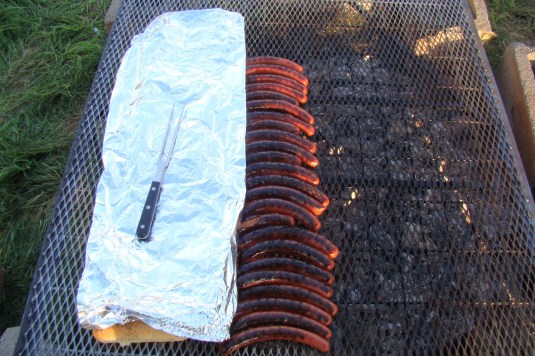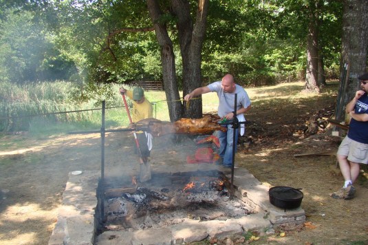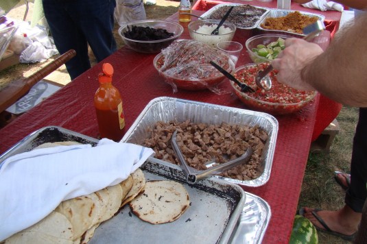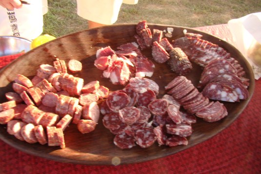 Grandma used to prepare a leg of lamb with mint jelly. I liked the lamb but the mint jelly was gross so I never ever thought to look for cuts of lamb in the grocery store to prepare for my family. I think the green jelly haunted me. When we first moved here, I wanted to purchase local beef but didn’t know anyone who raised cattle. I did an internet search and all that came up was a local lamb producer. I decided to try some chops and ground lamb and it was delicious. We bought 3 sheep from him to start our own flock and he’s now a very good friend. He throws an annual event for his customers and friends, we had lamb prepared every which way. Whole roasted on a spit, lamb tenderloin tartare, smoked mutton, lamb meatball and pate sandwiches with pickled vegetables, lamb charcuterie, lamb hot dogs, lamb sausage pizza (with my goat cheese), lamb pastrami and bacon reubens, lamb tacos. And these are just the dishes I got photos of. It was a fantastic weekend of wonderful food. I’m full. And next time you’re out to dinner… try the lamb. 🙂