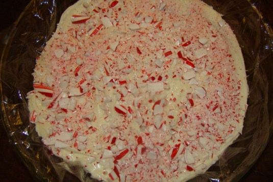 Since it’s close to Christmas, I thought I’d share something you could whip up for last minute gifts or just for snacking. Peppermint bark is the holiday staple of Williams-Sonoma. They sell it for $27 and are currently out of stock. For about $4 you can make your own. It takes just four ingredients: a bag of white chocolate chips, a bag of dark or milk chocolate chips, 1/2 teaspoon of peppermint extract and 4 broken candy canes (smack them with a rolling pin). I line a 10 inch pie pan with plastic wrap (makes it really easy to remove) and start with my dark chocolate chips. They go into a bowl in the microwave for 30 seconds at a time, stirring after every ‘zap’ until completely melted. The melted chocolate gets spread on top of the plastic wrap. Go find something to do for about 45 minutes while the chocolate hardens. Once it’s set, move on to the white chocolate chips. Zap them in the microwave the same way you did the dark chocolate. Once melted, stir in 1/2 teaspoon of peppermint extract. Spread on top of the dark chocolate and sprinkle on the broken candy canes. Allow it to harden then cut into chunks. You know you want some.