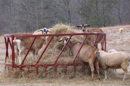 Filling the hay ring with hay has kept our cow Jessica from getting inside again. It hasn’t, however, stopped the goats. Don’t they have guilty looks on their little faces? The sheep are saying ‘move your fat ass, Hermione’.