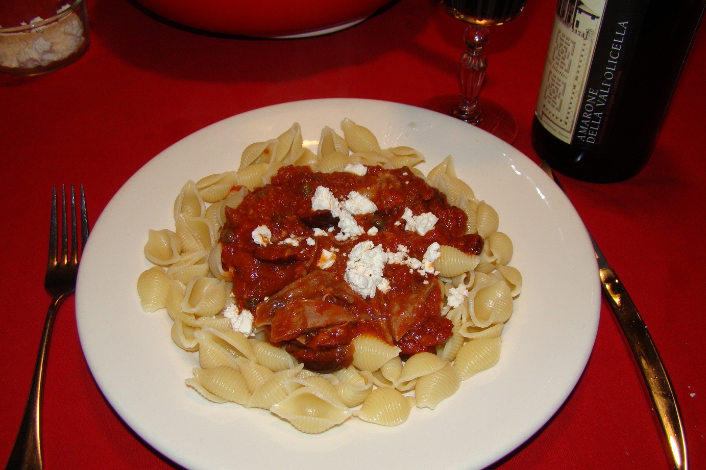 Dinner last night was lamb ragu puttanesca from a friend’s recipe. It starred shanks, garlic and goat cheese from our farm. If you’re a fan of lamb, I highly recommend it. The recipe can be found here – http://www.virginialiving.com/articles/lamb-ragu-puttanesca