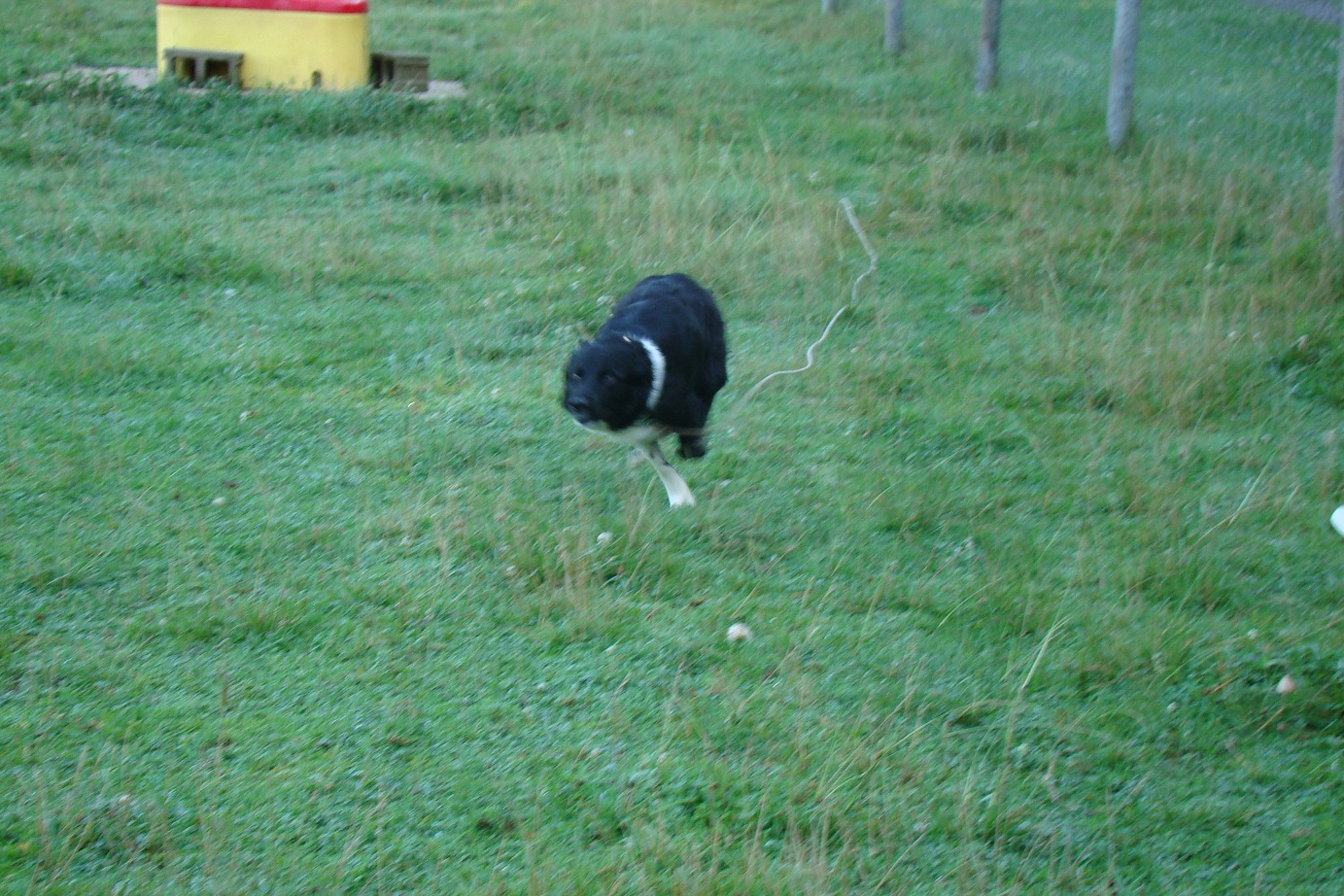 Jack flies by on his way to round up our sheep during training. Watching him accelerate is amazing. He enjoys working very much. Every border collie should have a few sheep to boss around!