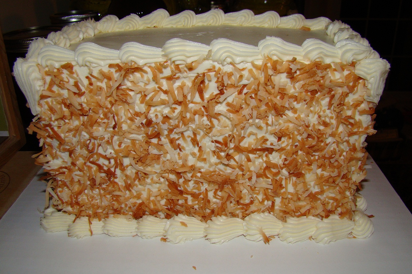 My friend Lora always brings the BEST stuff when she comes for dinner! Here’s her yellow sour cream coconut cake. To die for!