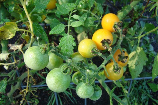 Even though we got an early start on tomato season this year, we’re still yielding (and canning and freezing) bunches. I’m not sick of them … yet.