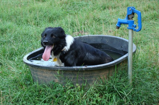 Jack enjoys his personal swimming pool out by the barn. When we turn on the water, he gets a little jacuzzi action.