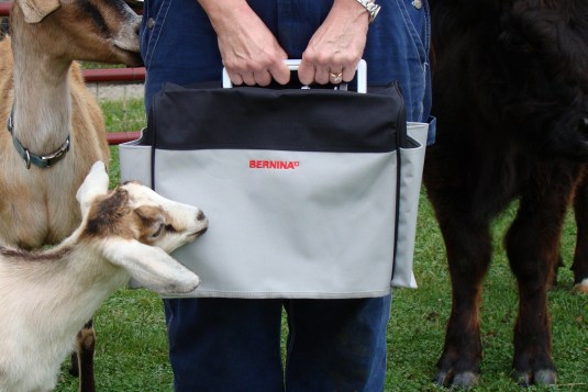 I decided to take it out to the pasture to see if anyone was curious about it. As it turns out, everyone was. Here’s the photo I submitted. They not only accepted it, but it’s the one featured at the top of the page! Here’s the original. Too bad Jessica and Hermione were edited out. 🙂 Summer thought it would be impolite not to give it a sniff. Here’s the link to Bernina’s website: http://weallsew.com/2012/08/13/master-craftsters-meet-bernina/