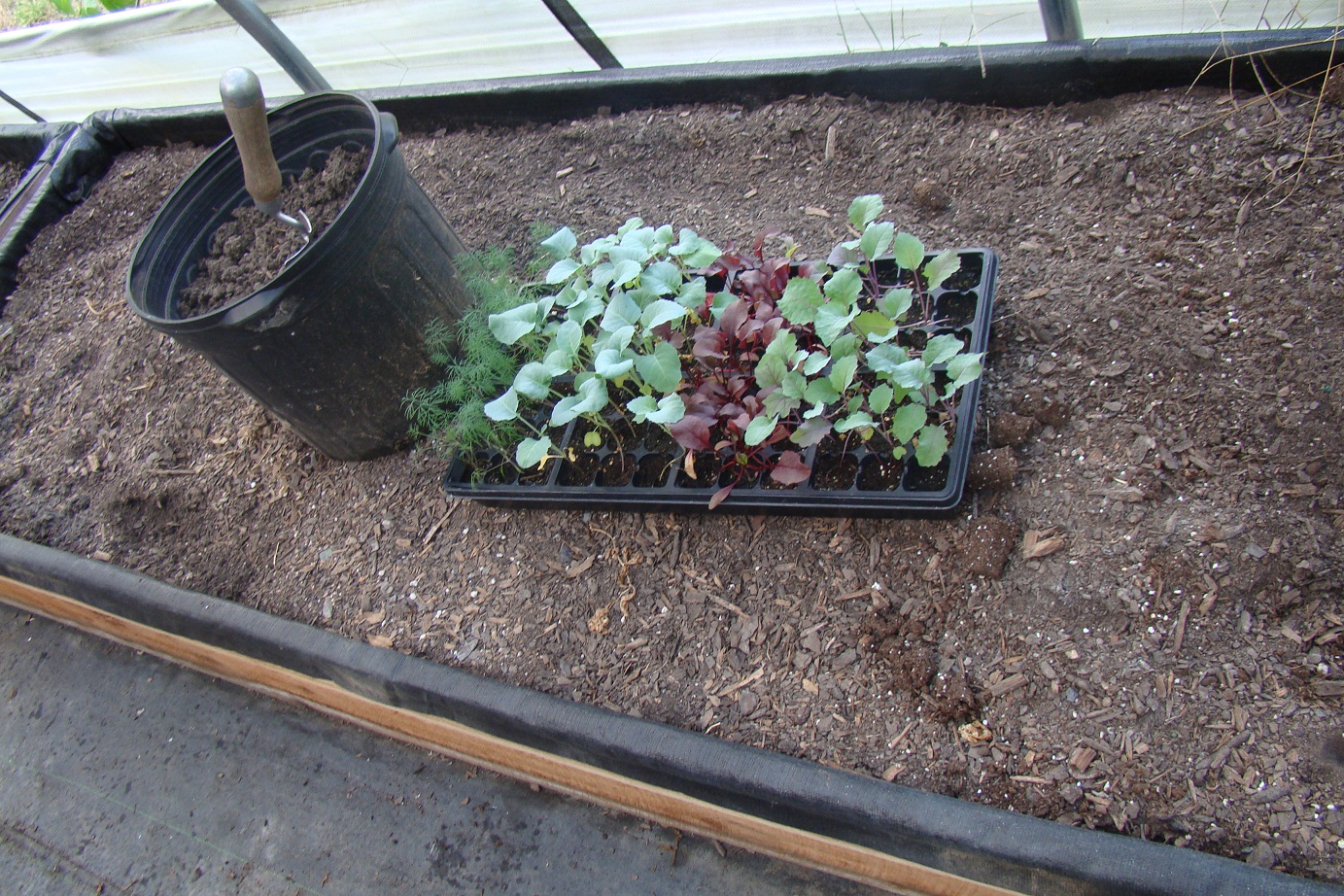 We spent a good amount of time this morning working in the greenhouse. We have three of our four indoor beds planted with carrots, kohlrabi, spinach, lettuce, beets, broccoli and dill. One entire bed has soybeans planted in it. We will put peas, cabbage and cucumbers in the final bed. Some of them might not do well but that’s OK. We learn more and more every year how to best utilize it for winter veggies.
