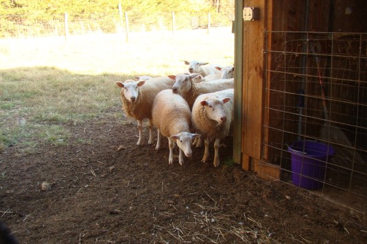 Our sheep tentatively peek into the barn looking for Jack. They think they’d like to come in, but not if he’s around.