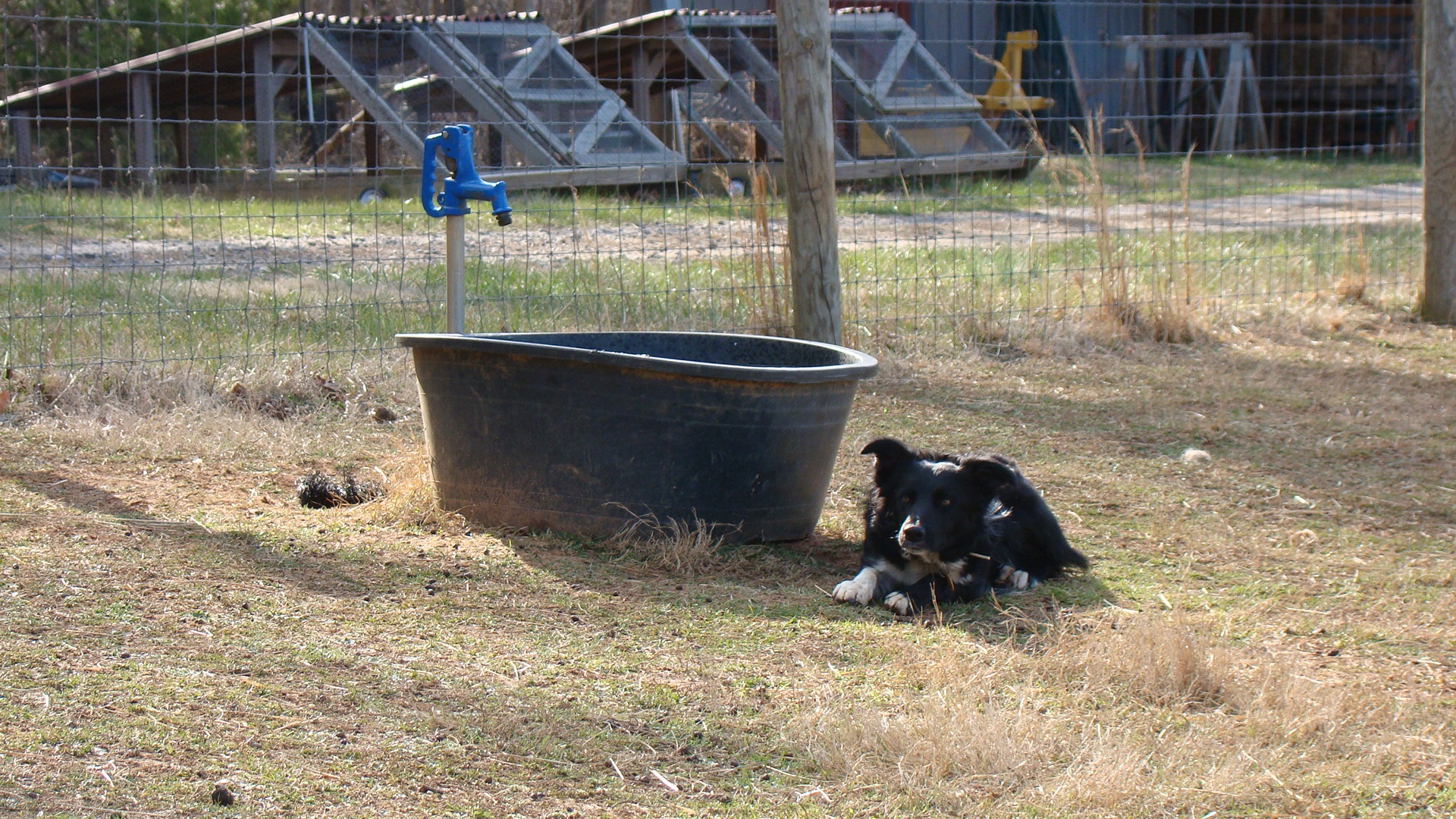 Jack hangs out by the waterer impatiently waiting for us to be done with animal chores so he can move sheep around for us. He gets to boss them around twice a day whether they need moving or not. We never finish our chores fast enough for him.