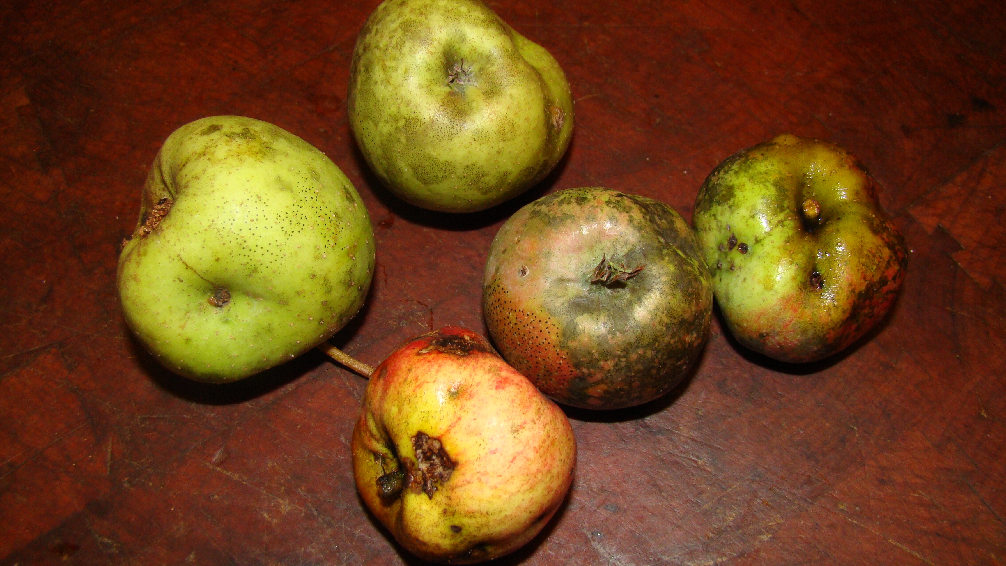 is that we finally got apples from the trees we planted in 2005. The bad news is these are all the deer left us. I think we need to be spraying them with some nasty chemicals or something and fortressing the trees if we want edible fruit. In related news, we have pears about 30 feet off the ground that the deer couldn’t reach. Luckily, we have a ladder.