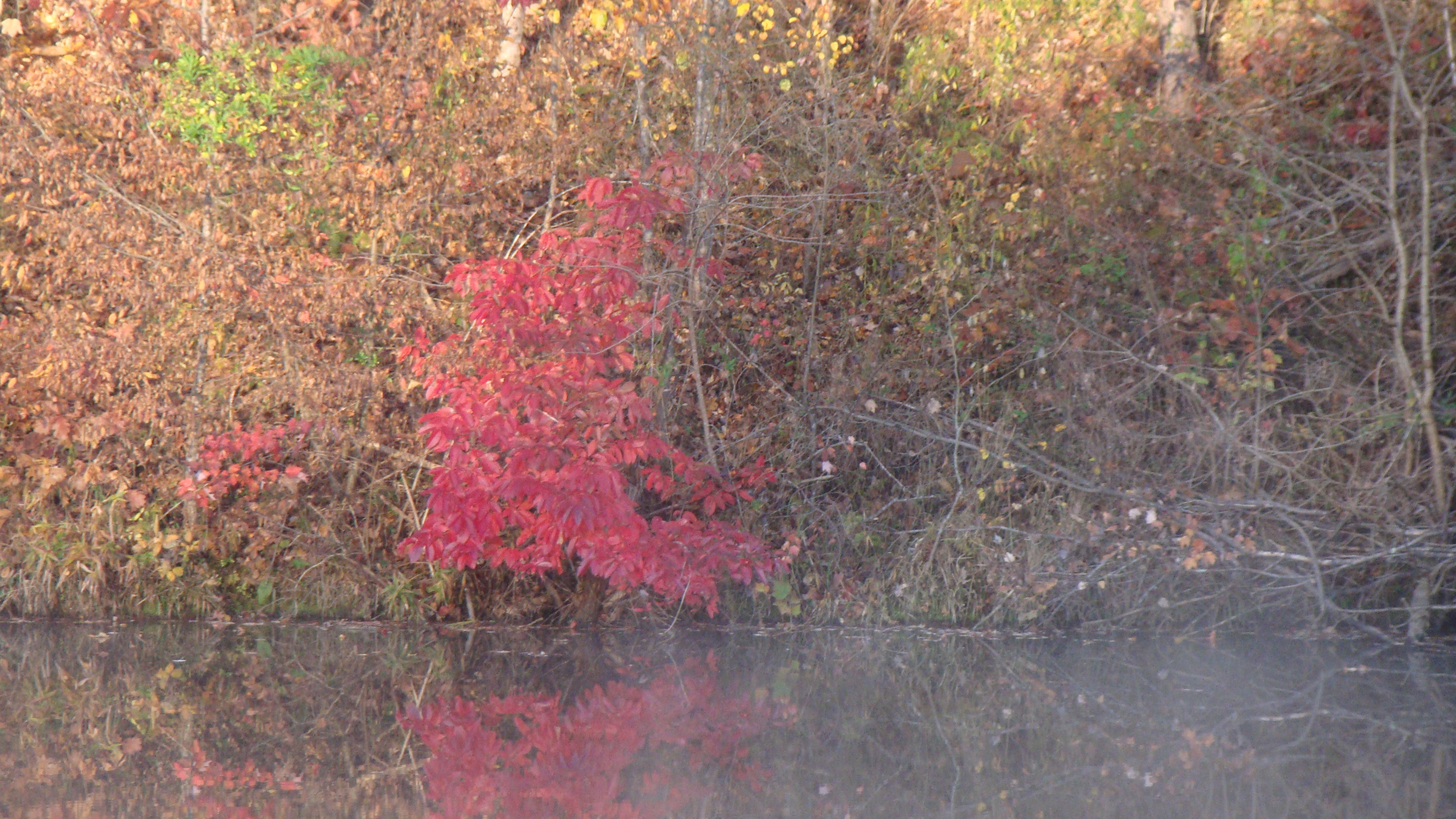 One little tree across the pond waited until almost everything else was dead to give off it’s color. Showoff!