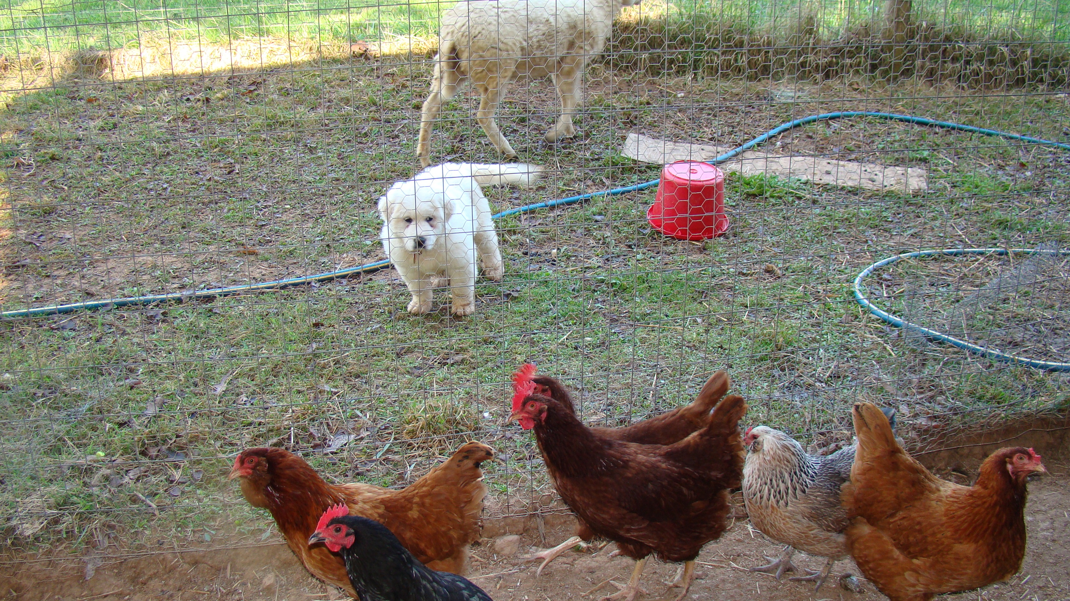 Our chicks got moved from their brooder to a giant portable dog pen in the chicken barn. They are separated from our older hens for their own protection. This gives the older hens a chance to get used to them before merging the flocks. That one giant white one is the same age as the brown. It’s the only Cornish Cross left after our hen-pecking incident where our older hens figured out how to get underneath the brooder and pecked them through the flooring, dang it. That issue has been rectified for the next batch. It’s always something.