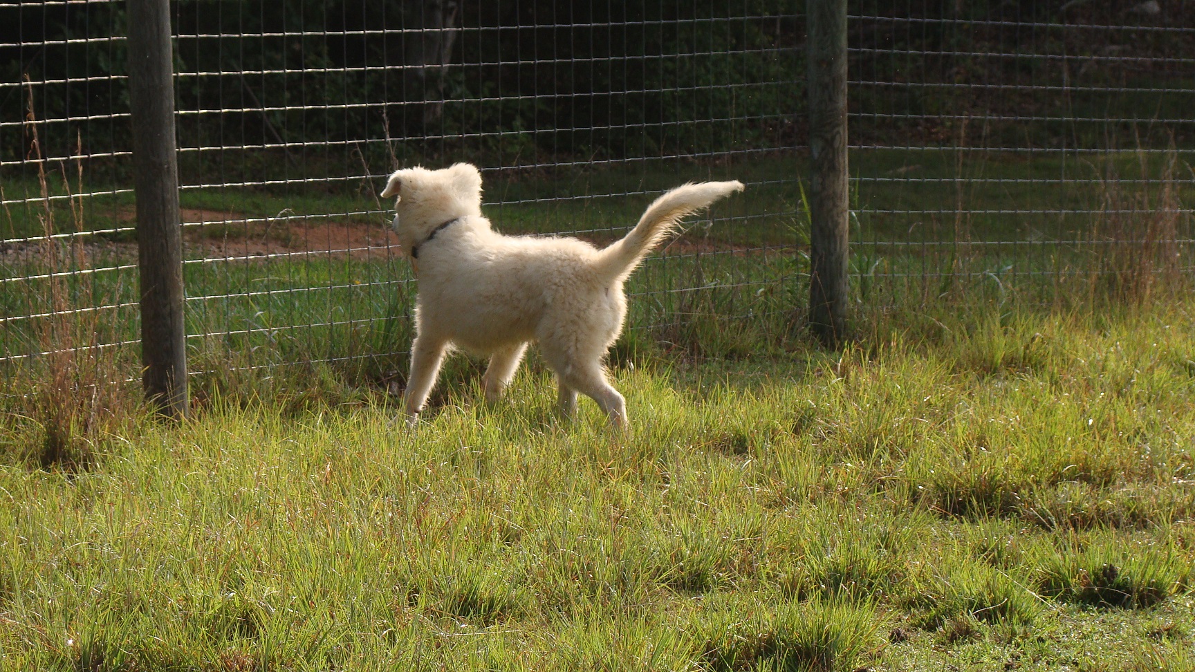 Lizzie found her big girl voice and is using here it to warn off a flock of turkey buzzards. We’ve also seen her barking at that little fox that’s been hanging around. Good girl.