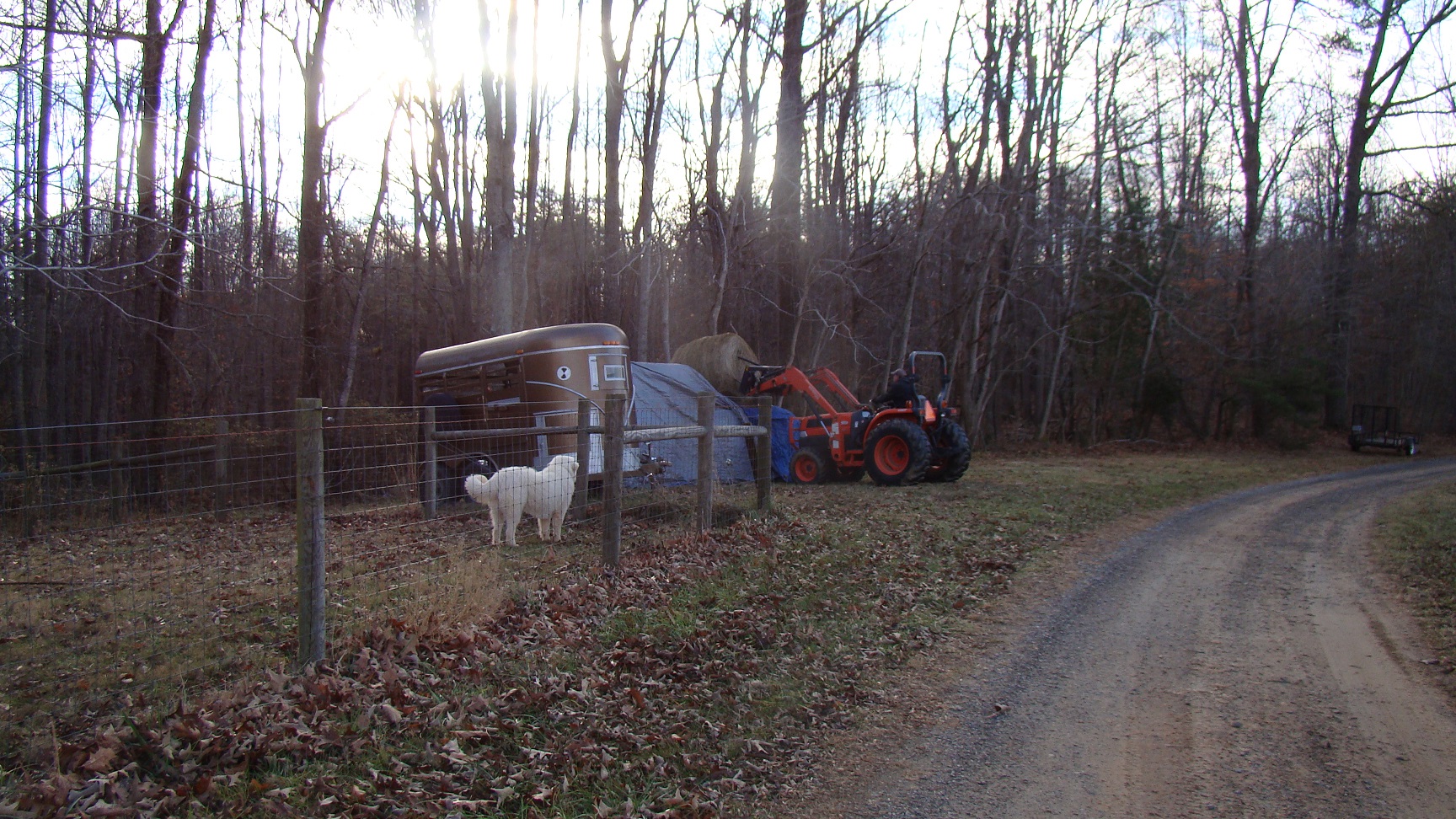 Our critters get excited when a new hay bale appears in their feeder. It’s a bit of a chore to get it in place. We have to put everyone up in the barn to keep them safe away from the tractor, and from a few hundred pounds of hay as it drops into the feeder. Isn’t Lizzie getting so big?