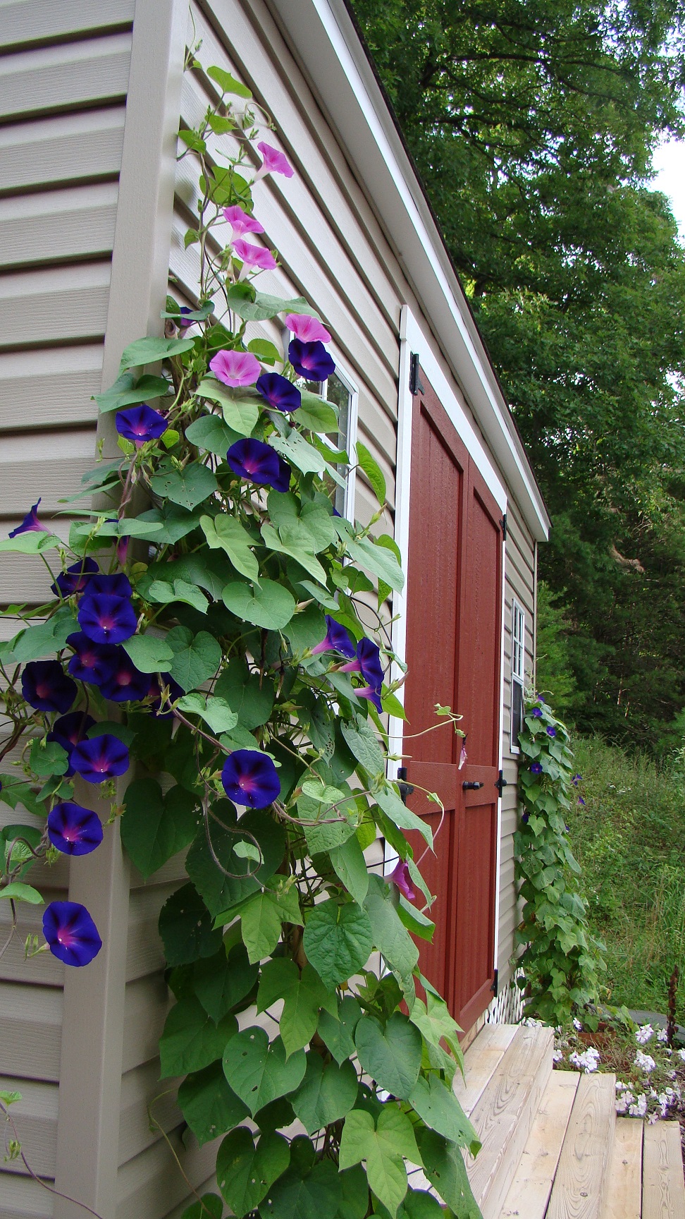 Along with sunflowers, we planted morning glories and moonflowers this year in pots from seed. This will happen annually from now on.