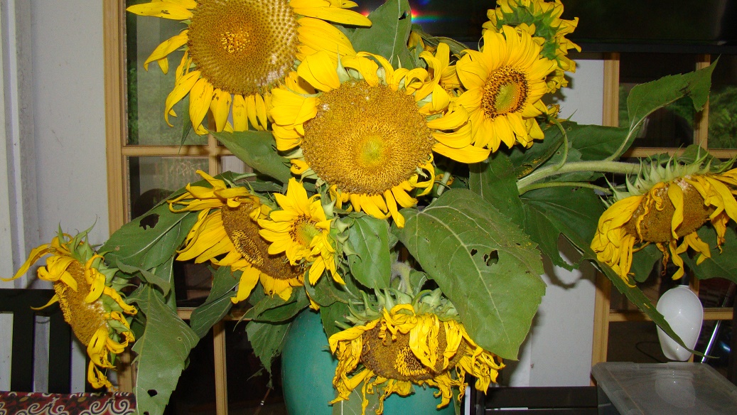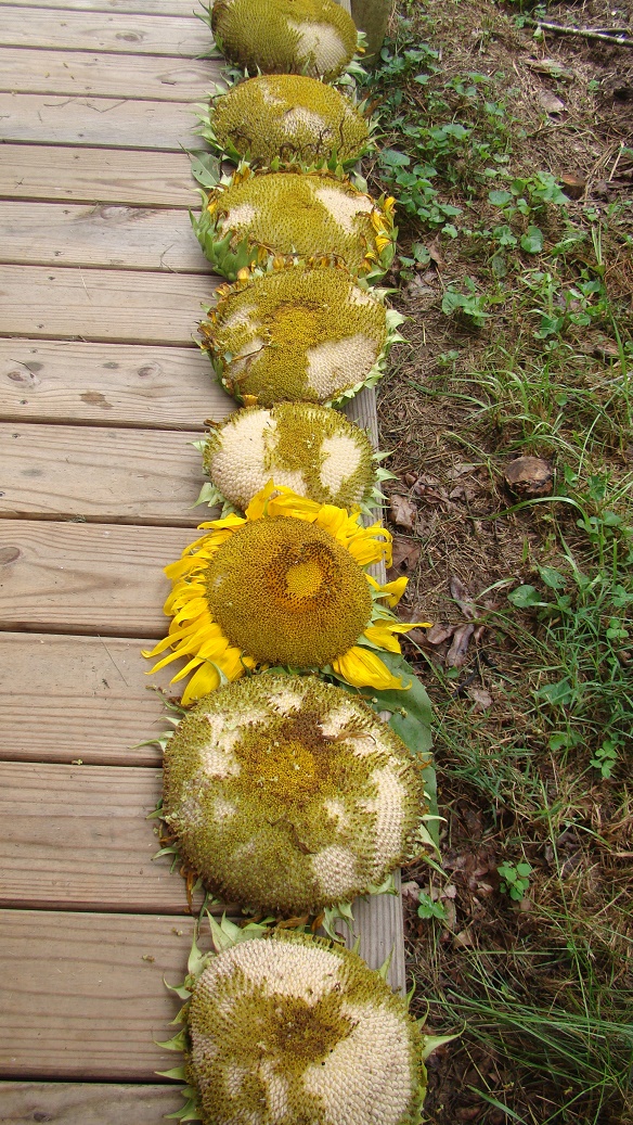 We had a big rain and they started leaning on our garden fence so we took them all down. Some for display, some for seed saving and some for our chickens. They are eating well this Summer.