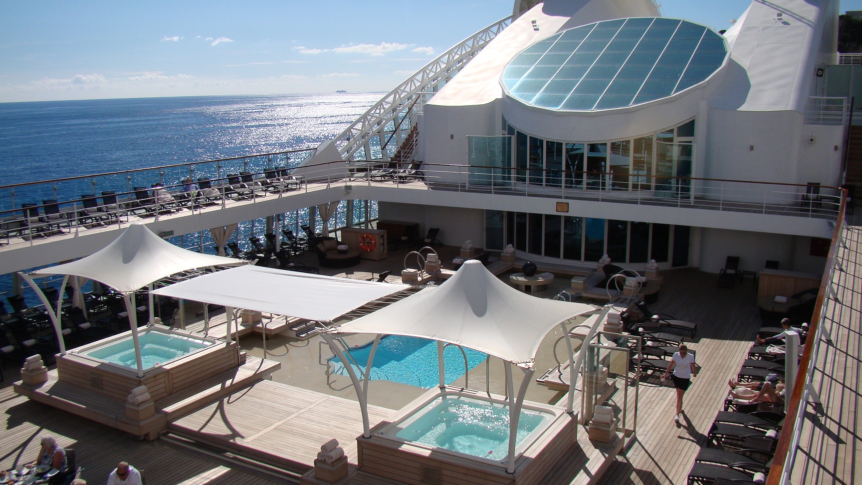 We had every breakfast, lunch and most dinners in the outdoor Colonnade restaurant, which was situated at the very rear of the ship. It offered gorgeous views of the sea as it slipped by and the ports as we approached. There were infrared lamps in the ceiling for cool evenings and the staff also provided warm wool blankets if needed.