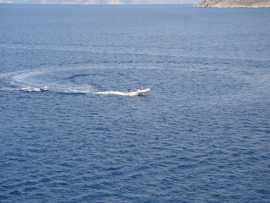 Back on board for a lunch buffet of Greek delicacies. We heard some commotion in the water at the back of the ship and realized we had missed the announcement that our captain decided to open the marina on the back of our ship and offer us water sports that afternoon.