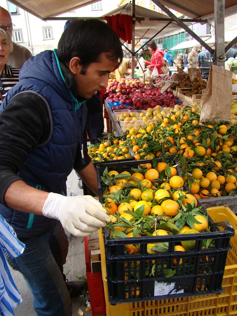 At least once every cruise, the chef takes a group of about 20 guests with him shopping in one of his favorite markets. Our chef, Pascal de Portemont, chose Livorno, Italy and Syracuse, Italy. We got to spend the morning with him in Livorno while he shopped for our meals.