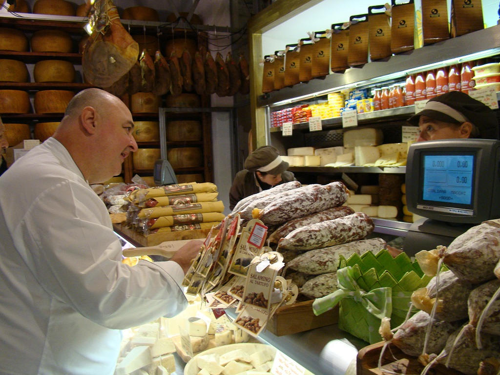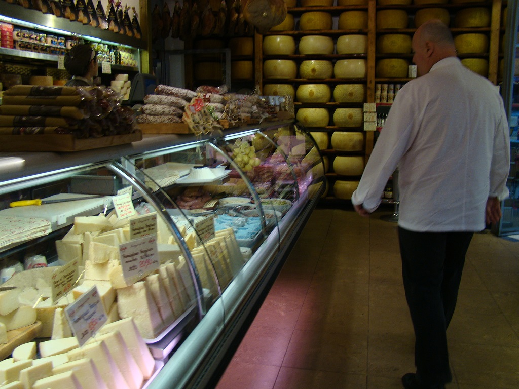 Our first stop was a cheese and sausage shop. They provided samples for us all of everything he purchased. We brought several kinds of cheese back with us. Also fresh sausage that was used in a pasta dish for lunch the next day, some truffled salami, several kinds of pesto and his favorite salt. We bought some, too.