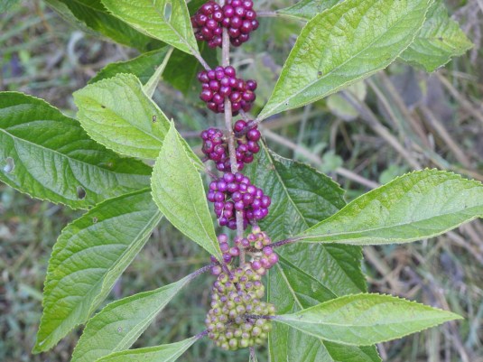 The beauty berry bush we brought with us when we moved here is in it’s full Fall splendor. I can’t grow a pumpkin to save my life but this spray of color outside my kitchen window puts me in the pumpkin season mood every year.