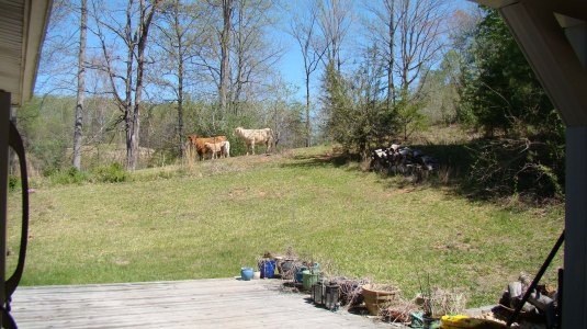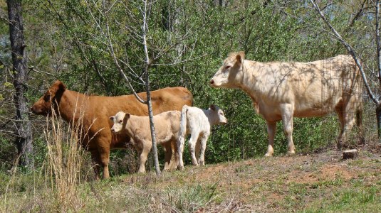 We’ve seen coyote, deer, beavers, otters, raccoons, possums, a bear and all other manner of wildlife on our property over the years. This is a first. Four cows strolled into our back yard last weekend. Our gate was open at the time so it’s possible they walked the half mile up our driveway. When they noticed us staring at them, they nonchalantly walked into the woods behind our house and disappeared. Brian took a ride to see if any of our neighbors had a fence down or was out frantically looking for livestock but couldn’t find anything.