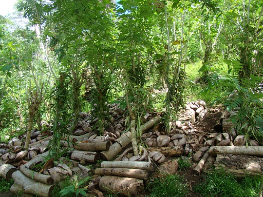 This is how vanilla grows, on vines that crawl up trees. It’s an orchid species that has to be hand pollinated.