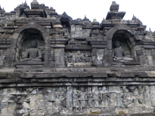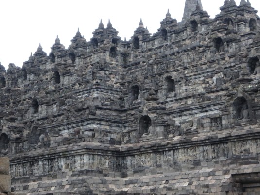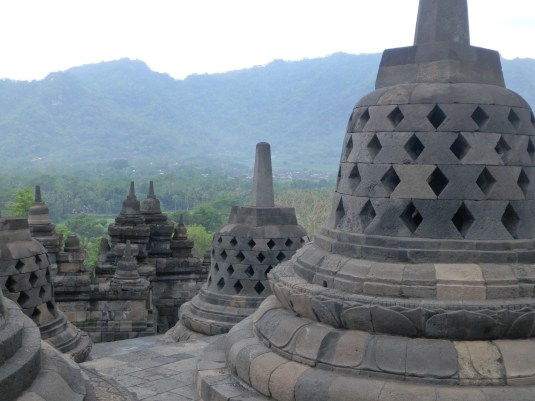 It takes a lot to get us on a nine hour excursion, but the idea of visiting Borobudur temple got us on the bus. It’s the world’s largest Buddhist temple, built in the 9th century and abandoned in the 14th. It was rediscovered in 1814 and has since been restored and listed as a UNESCO World Heritage Site. The temple is a few hours drive from the port of Semarang with heavy traffic so we had a police escort with lights and sirens the entire way there and back. They drive on the opposite side of the road than the U.S. there (and most every other place in the world we visited). We drove most of the trip head on into traffic on their side of the road. The temple was massive and impressive. We climbed to the top, the views were incredible. The grounds around the temple were gorgeous and they fed us lunch before putting us back on the bus. It was a good use of our day in Semarang!
