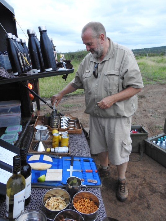 We ended our grand adventure in South Africa where we had an opportunity to finally see a rhino, thus completing our big five sightings. We stayed at the Thanda Game Reserve where we had our own individual lodge complete with a hot tub. A highlight of our visit was having cocktails in the bush at sundown. We spent quite a good bit of our safari drive hanging out with a pride of lions next to a watering hole.