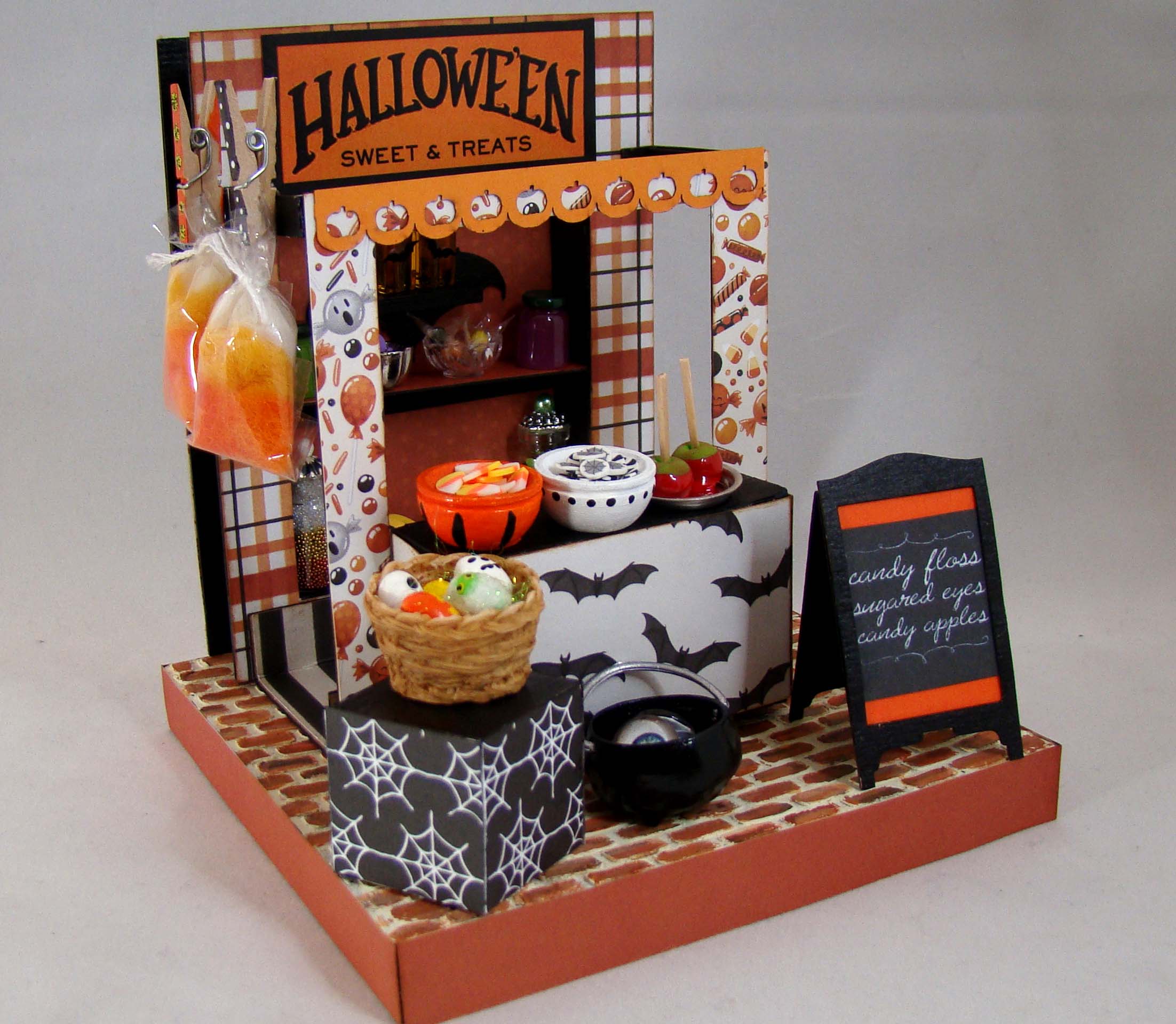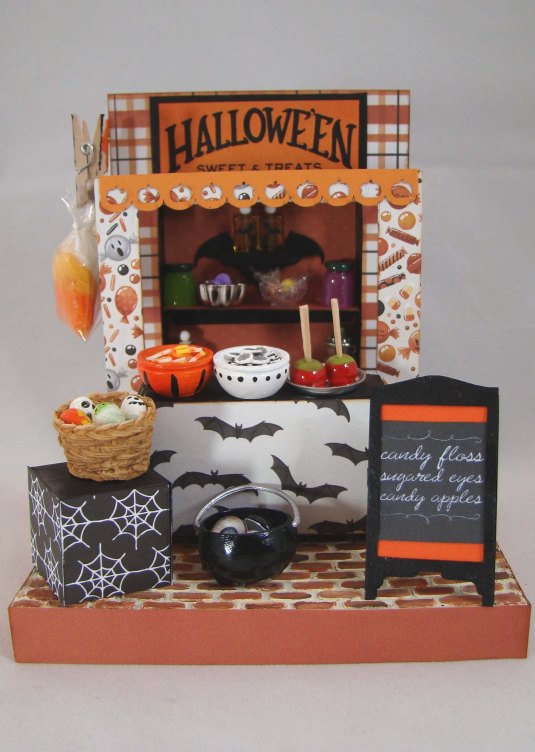 I have another project for Alpha Stamps today, one that is perfect for the season. This little stand works perfectly for a Halloween sweet treats market booth. I could see using this piece for so many different projects – a hot chocolate stand, Christmas market stall, farmer’s market stand, bakery pop-up, the possibilities are endless!