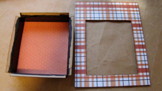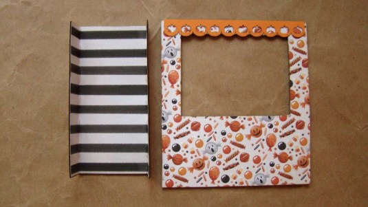 The Market Stall Niche Add-On has a floor, facade, counter and two small connector pieces. Here is the floor covered in striped paper and the facade which has an Orange Pumpkin Border.