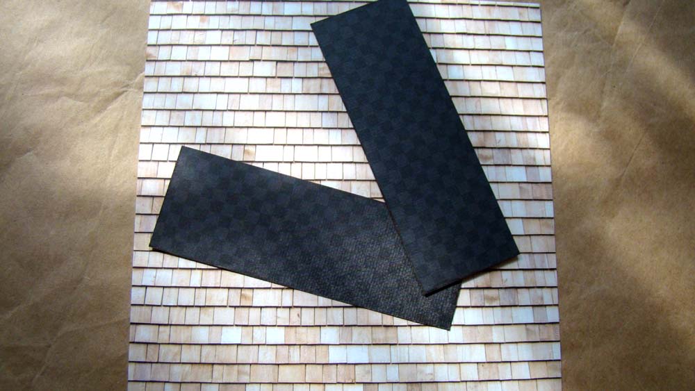 The roof got a shingles paper also from the Home Essentials collection. I used a black and gray check paper from Kaisercraft’s Looking Glass Collection for the house’s exterior walls.