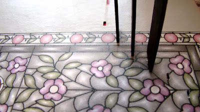 Here is the upper level assembled. I painted the left wall in a soft gray. That massive stained glass detail is also from Dark Fairytale.