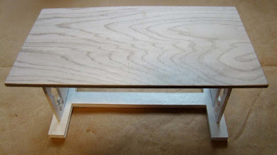 The structure has two slatted porch sections. Those were painted in a medium gray and glued in place.