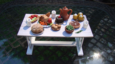The fun part… I got out my polymer clay and paper clay and put the TV on. It was fun researching medieval banquet spreads to see what all to make. Any questions just ask in the comments!