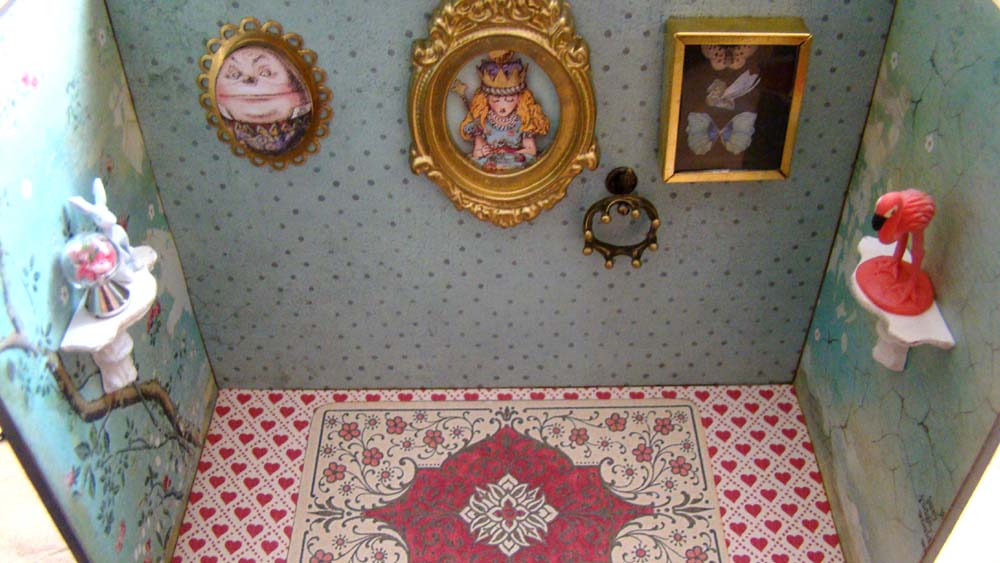 I love the Queen Alice image, and framed her overlooking the scene. Her crown hangs below her painting where it’s ready to grab and run.