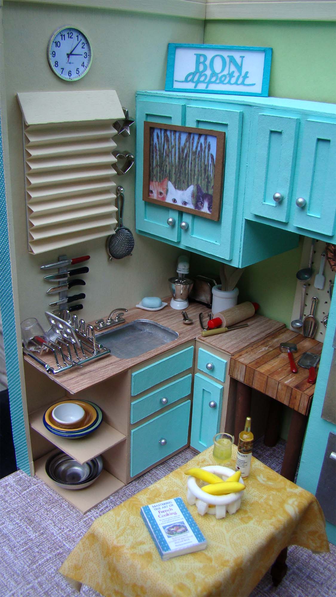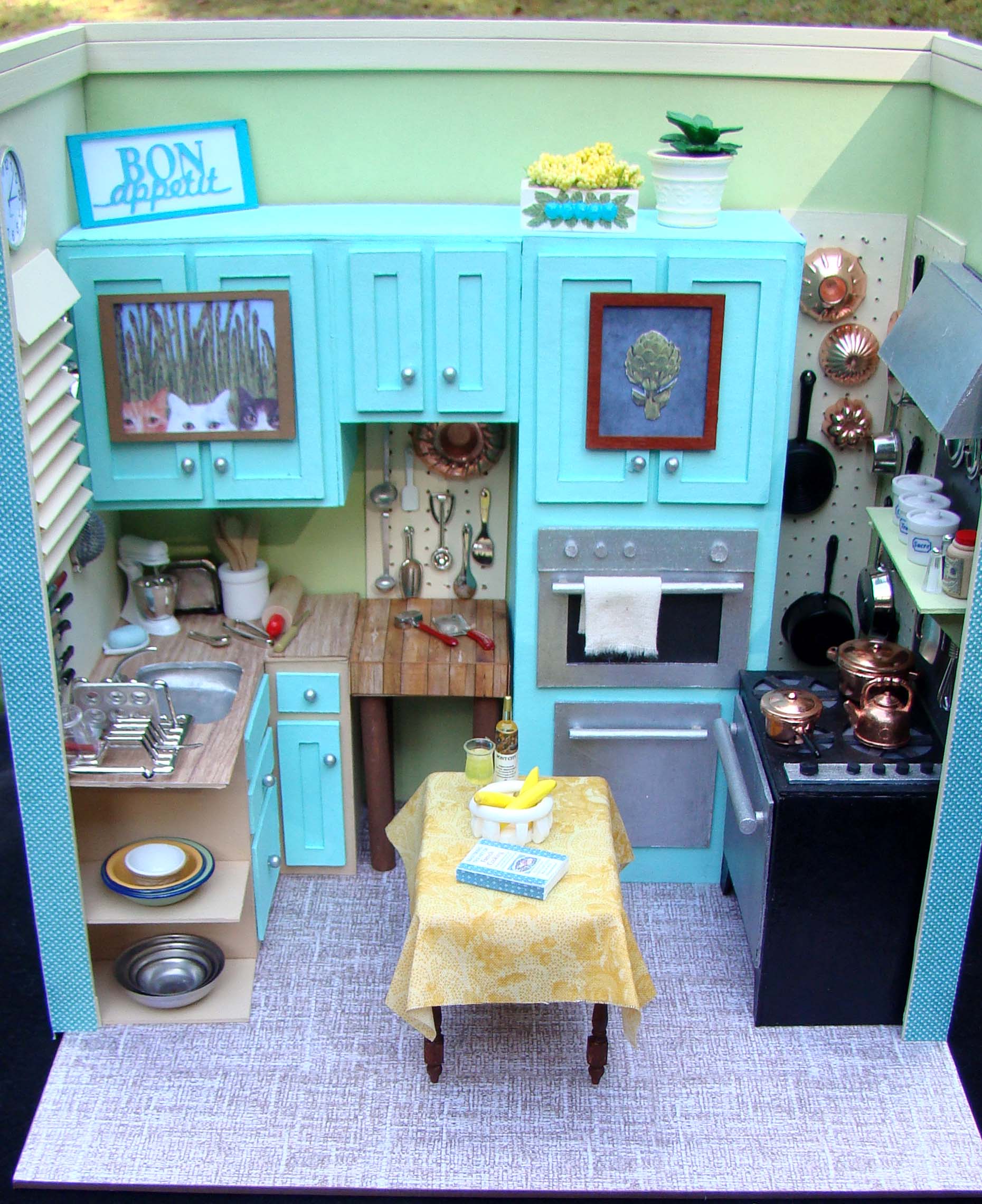 This project was truly a labor of love and a chance to stretch my artistic abilities. HERE is the supply list of the all the great kitchen miniatures that made this project possible.