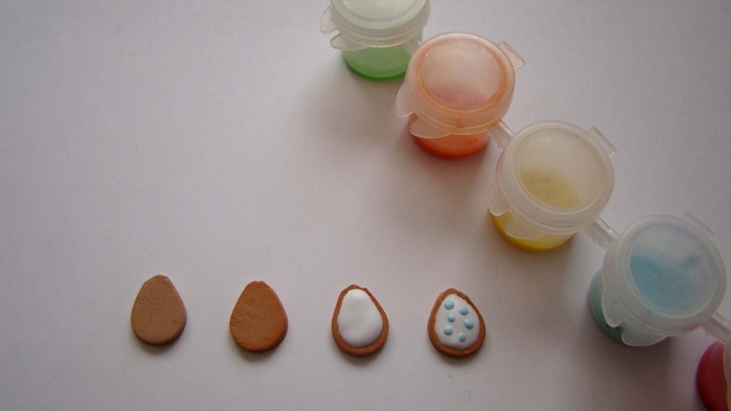 - Egg shapes were cut from light brown clay