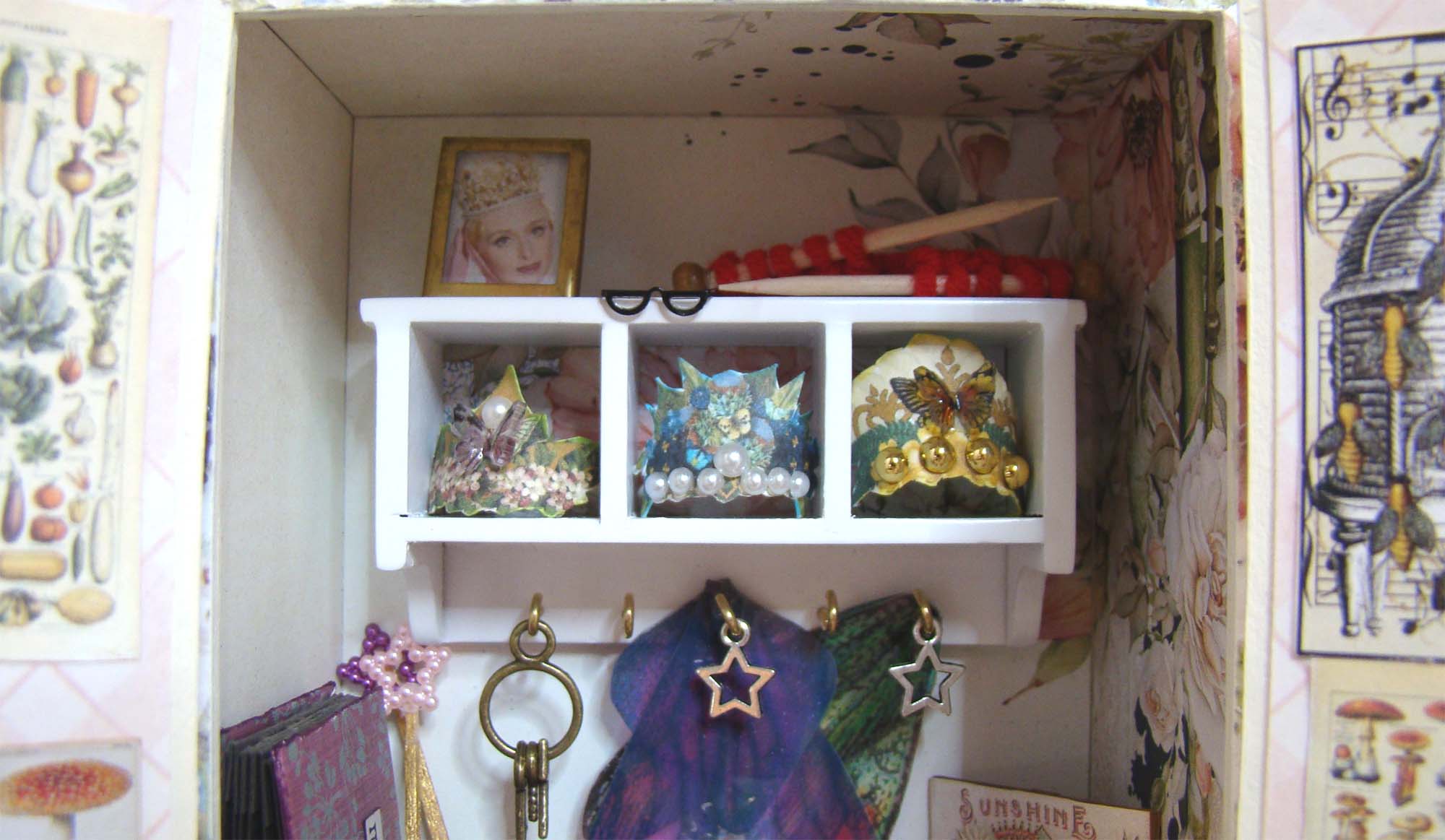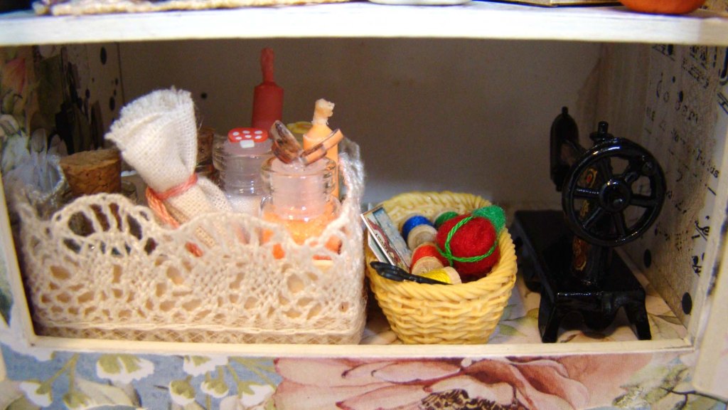 I added two of the 1:12 Shelves on the wall framed a few sweet bunny prints using the Mini Frames Set and images cut from the Peter Rabbit and Bigger Bunnies collage sheets.