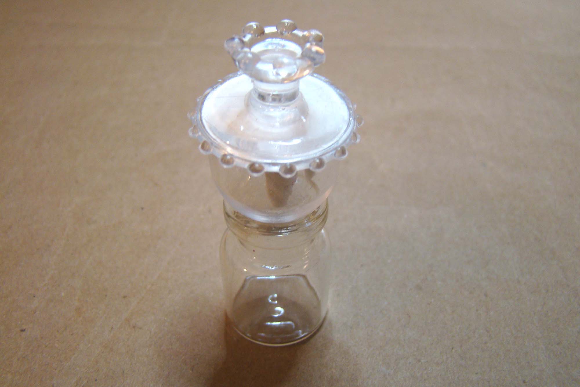 With the stall ready to open for business, I set to making cute little wares and decorating little glass globes in as many ways as I could think of. The first thing I tried was coating the interior of some 12mm Round Glass Globes with metallic acrylic paint to make round pearly ornaments. I thinned the paint with a bit of water to make it flow easily and dripped enough inside the globe to coat the interior and set them aside to dry. The globes are secured to a plastic water bottle cap using double sided tape to keep them upright. Tacky wax is also great to use to secure globes in place while decorating.