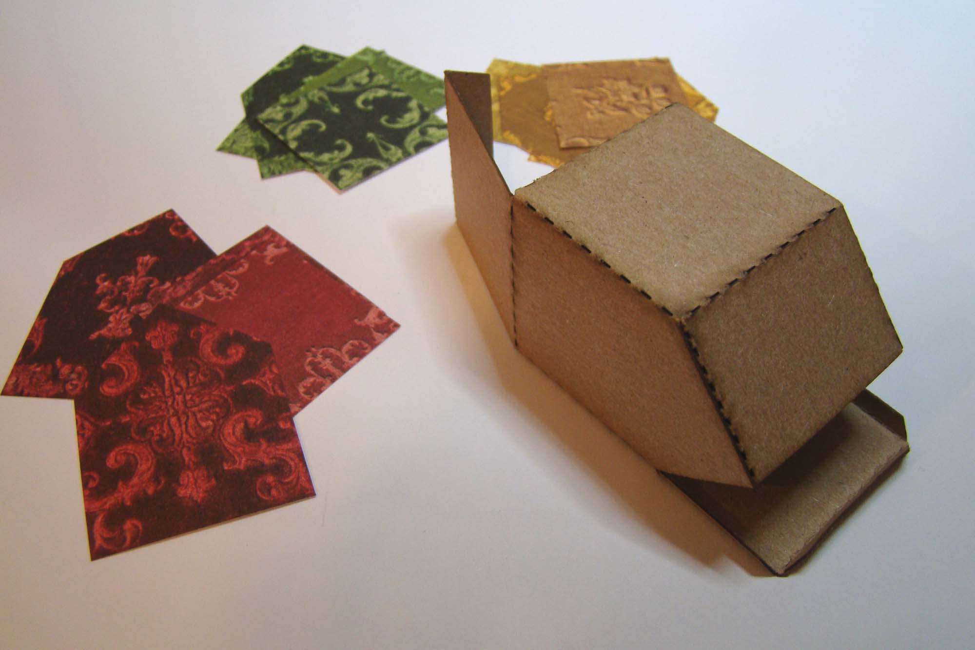 They ship flat and are easy to fold, assemble and secure with a bit of tacky glue. I started by lightly scribing the dotted score lines with a bone folder which made bending the tabs super easy.