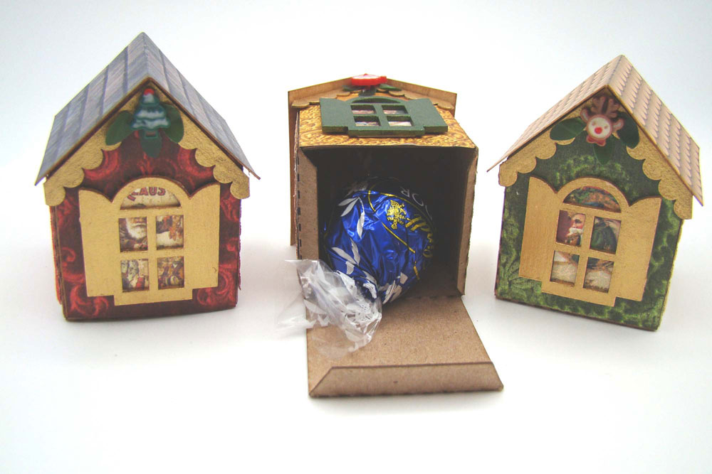 What’s great about these little houses is they can be used as tiny decorative gift boxes with a treat stashed inside. Truffles anyone?