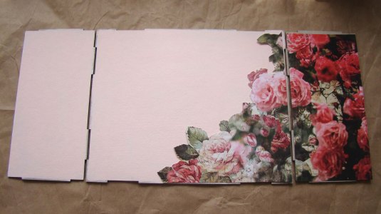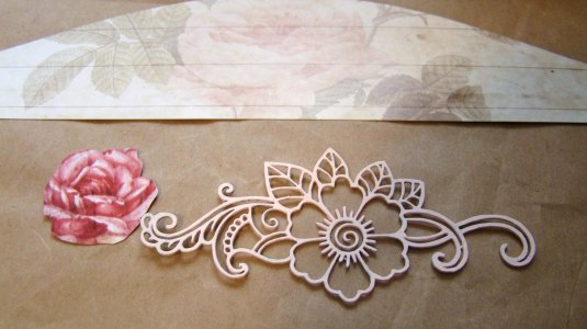 Keeping with the floral theme, I chose a Henna Floral Flourish for the curved facade. It was painted pale pink and one of the roses cut from the paper set was centered beneath it.