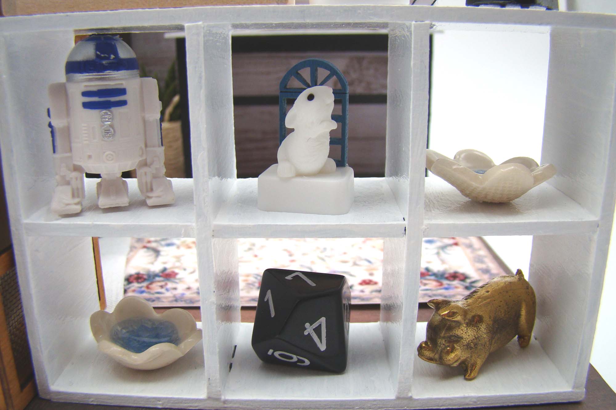I have a miniature art studio project for Alpha Stamps to share with you today, one that features a new corner room box and some fun newly arrived furniture and decorative pieces.